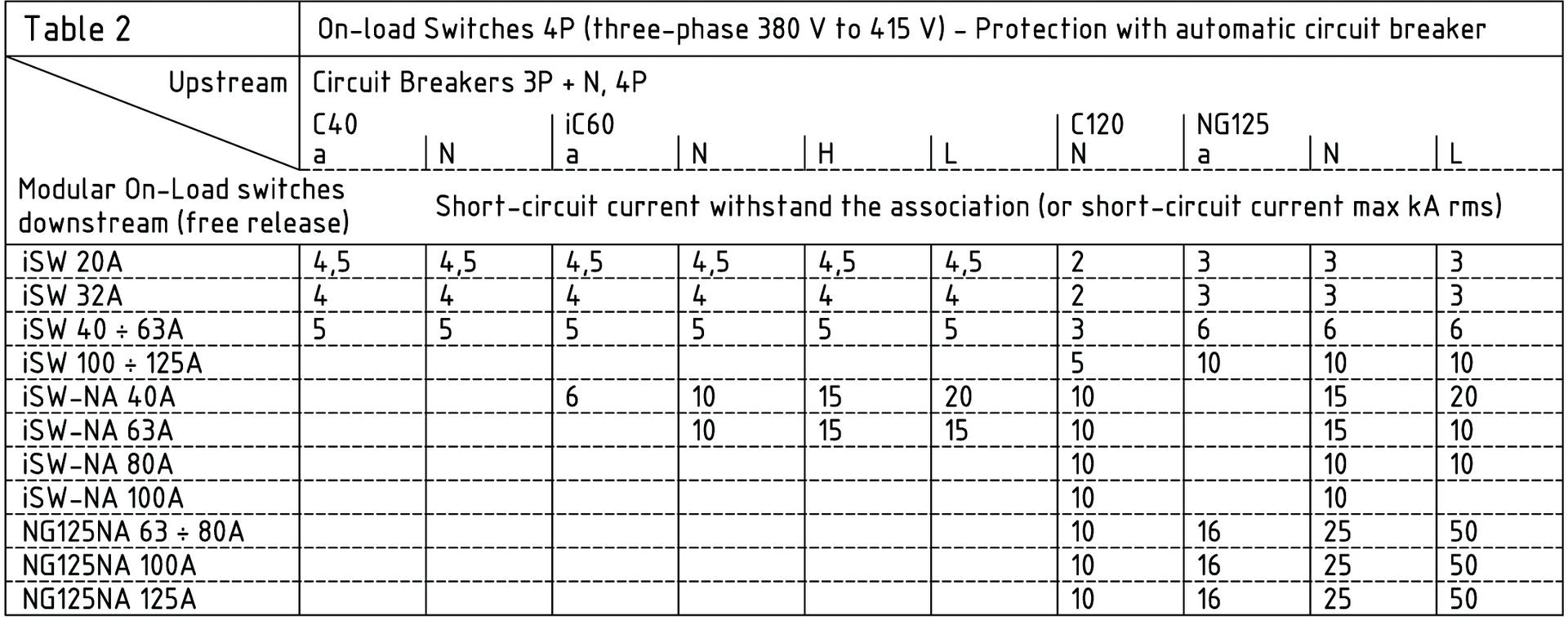 Another parameter to be checked is that the on-load isolator switch is appropriate for a thermal resistance to short circuit (Inc) greater than or equal to the short circuit current required by the customer and/or to the short-circuit current of  upstream thermo-magnetic circuit breaker.