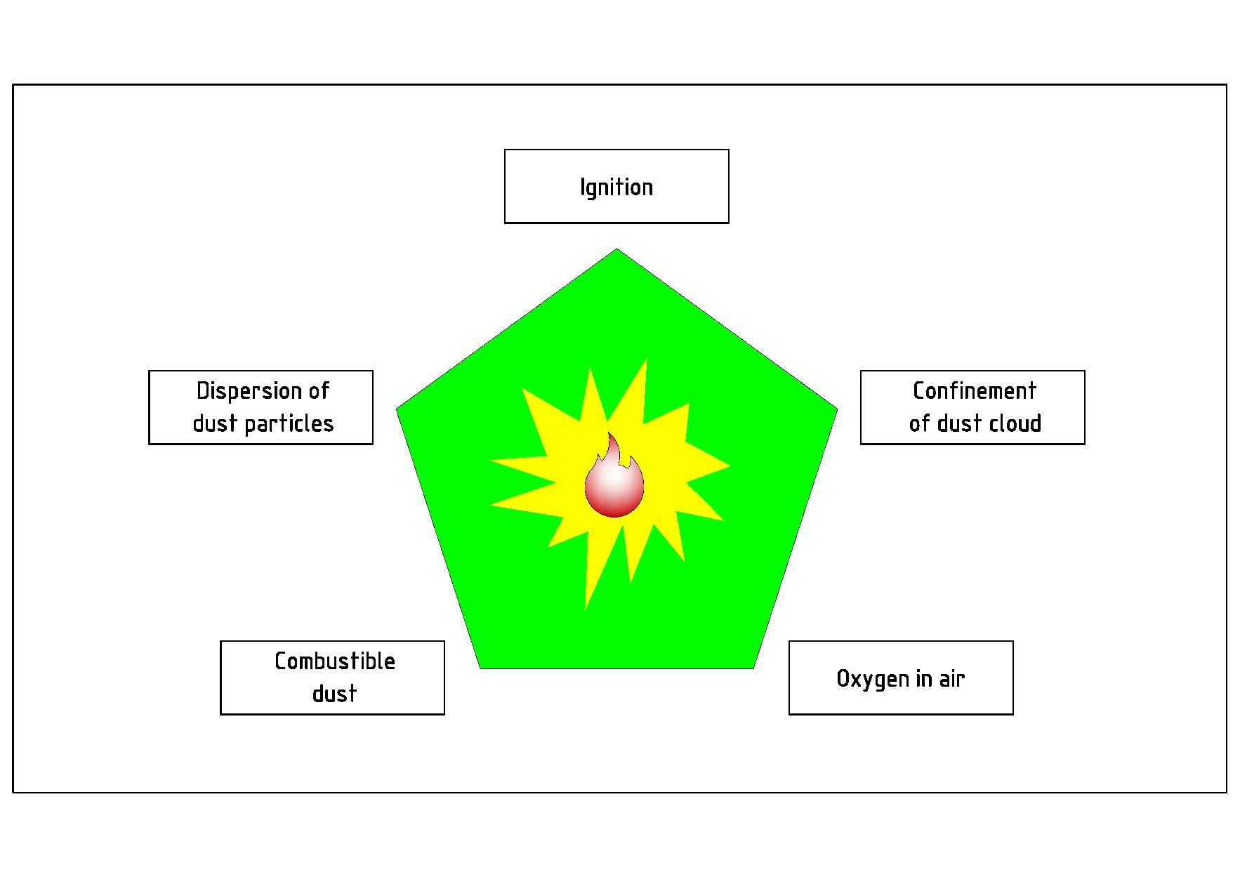 So that an explosion of combustible dust can occur, the elements necessary for a fire ("fire triangle") must be present. The elements are: