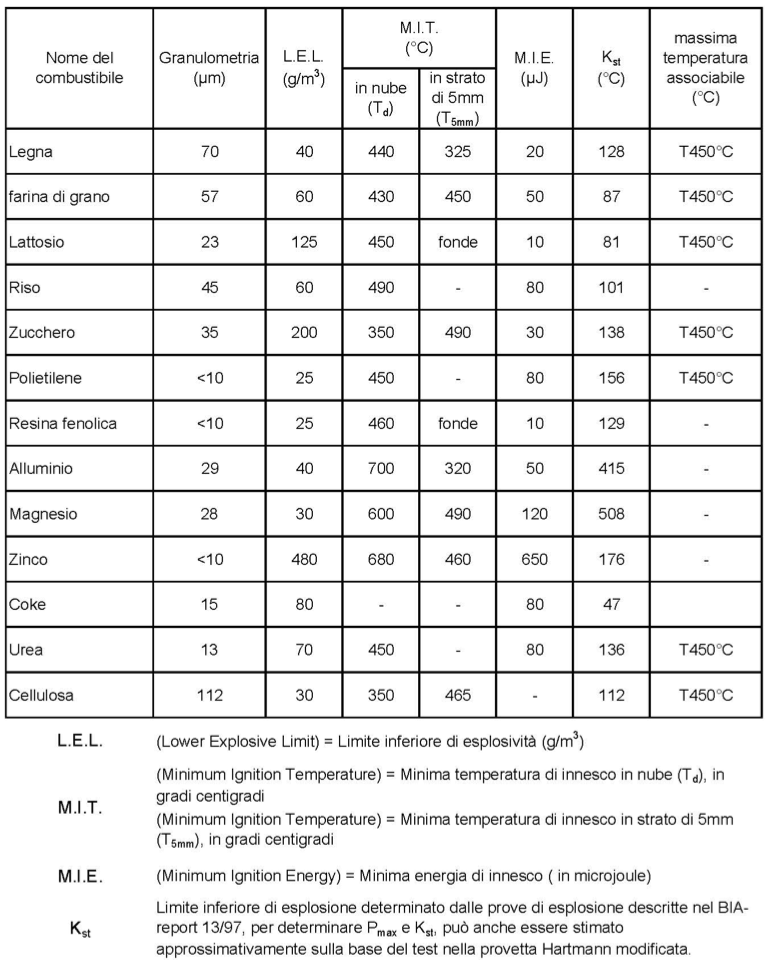 Le norme 60079-10-1 per i Gas e 60079-10-2 per le polveri le trattano in modo completo ed esaustivo ma, ai fini di una breve esemplificazione, vediamo alcuni esempi di gas e di polveri e le loro caratteristiche.
