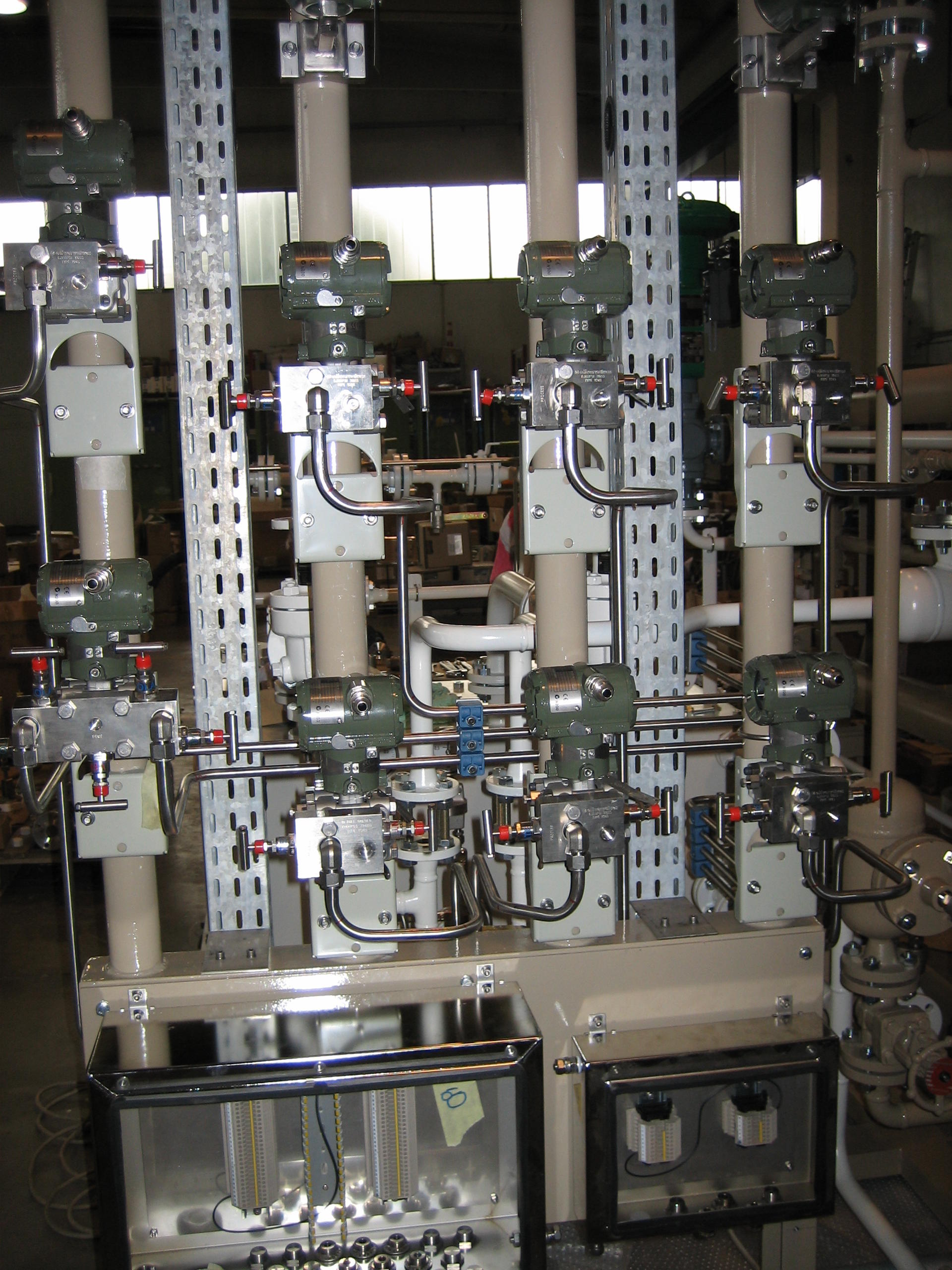 Nell’illuminazione di strumentazione in campo, di livelli esterni ed interni di serbatoi contenenti liquidi e/o solidi allo stato granulare o polveroso come, ad esempio, i serbatoi di contenimento farine, vengono utilizzati corpi illuminanti di dimensioni contenute o con accessori di fissaggio idonei alla funzione richiesta o, in casi estremi, corpi illuminanti portatili con alimentazione autonoma o funzionanti con energia esterna prelevata dai circuiti prese luce distribuiti omogeneamente su tutta l’area dell’impianto.