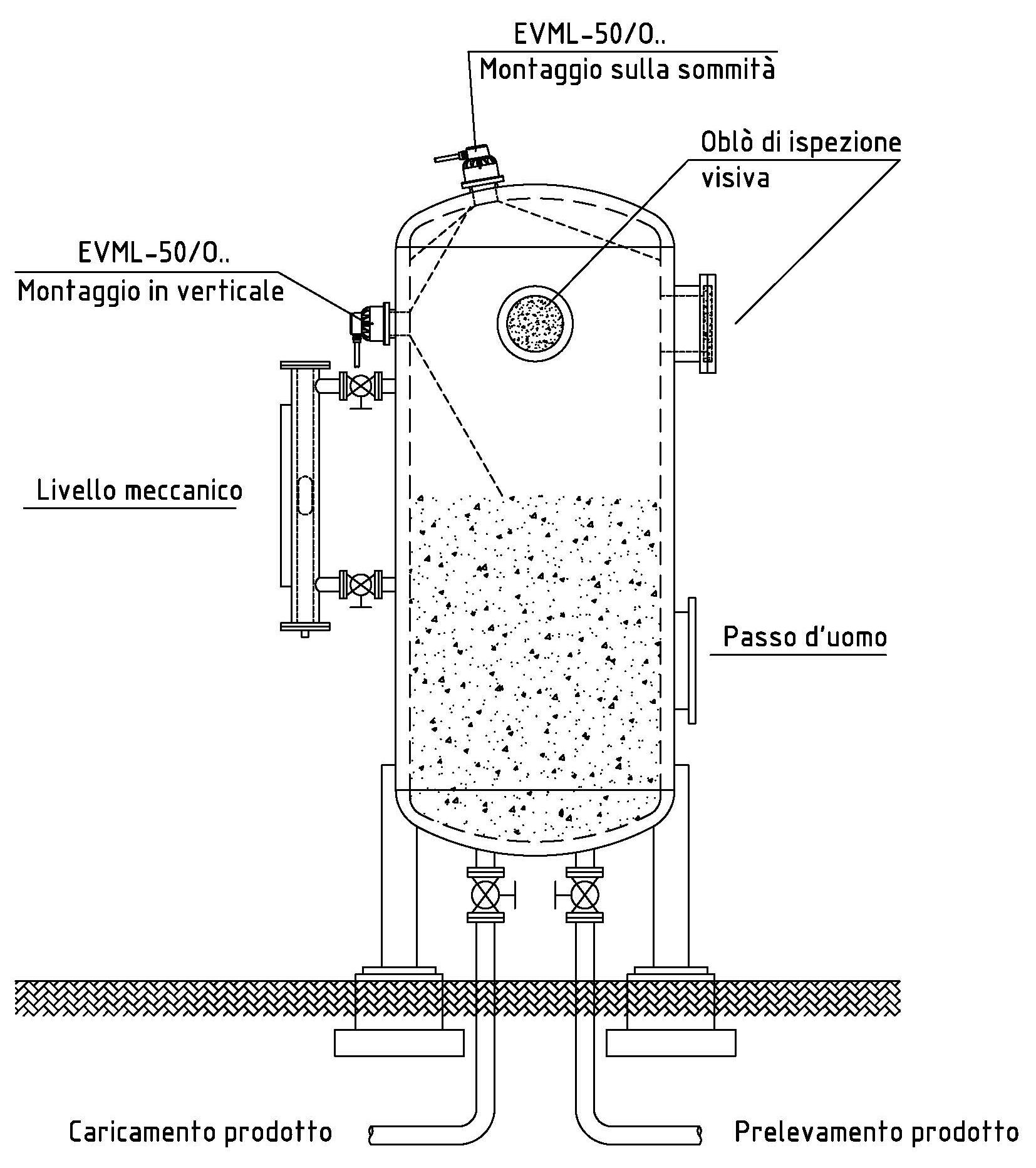 Fig. 1 Applicazione di corpo illuminante serie EVML-50/O.. per serbatoi con livello meccanico