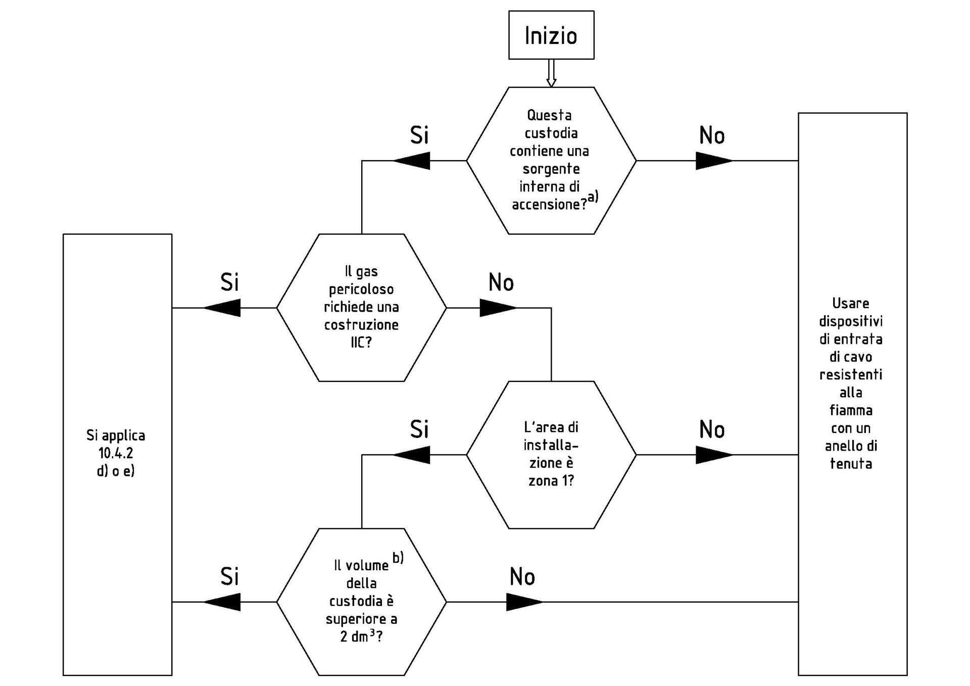 a) le sorgenti di accensione interne comprendono le scintille o le temperature dell’apparecchiatura che verificandosi durante il funzionamento normale possono provocare un’accensione. Una custodia che contiene solo morsetto o una custodia ad ingresso indiretto (vedere 10.4.1 della norma IEC 60079-14) non è considerata una sorgente di accensione interna;