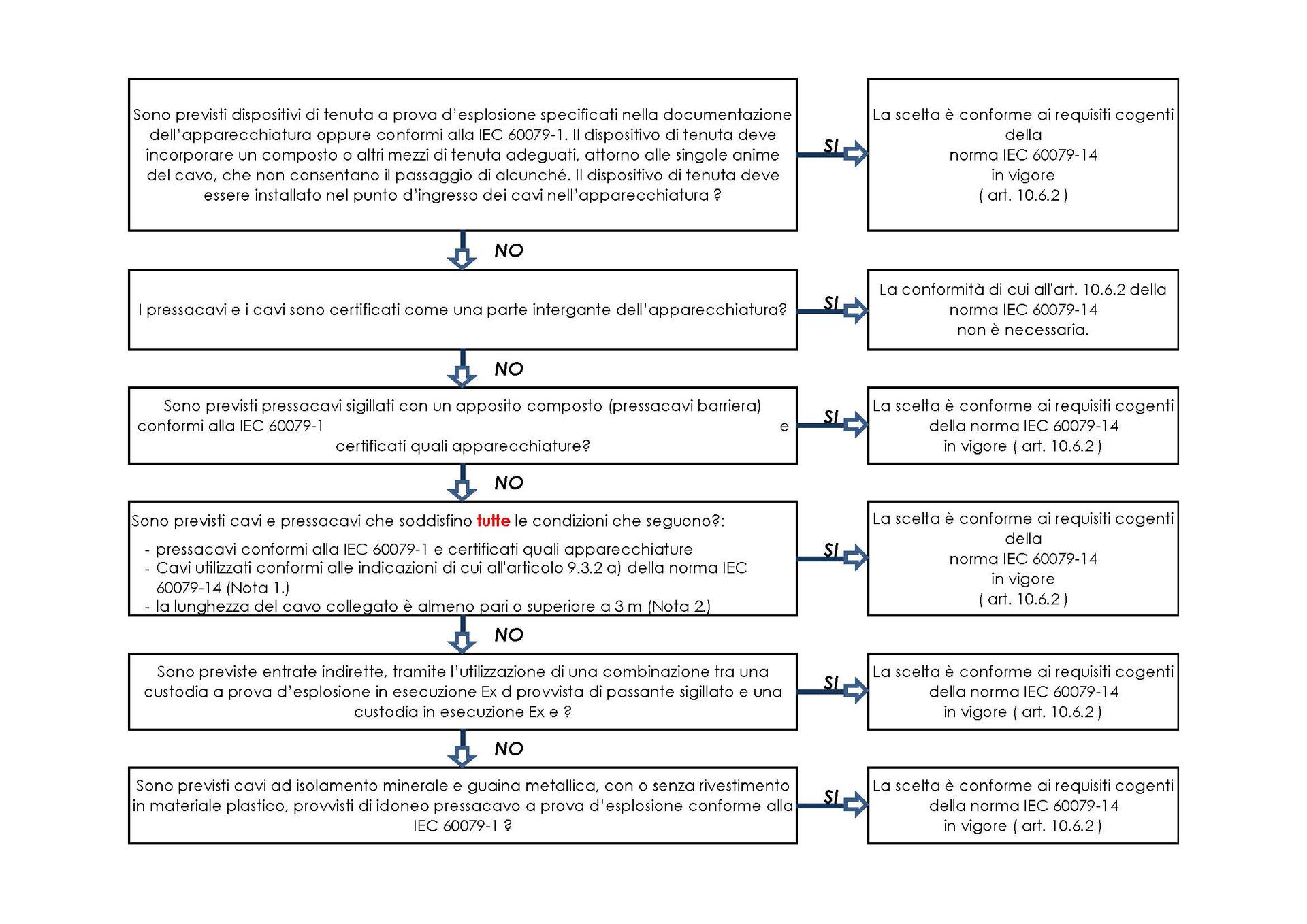 Con l’avvento prima della normativa IEC/EN 61241-0 e successivamente della IEC/EN 60079-0, così come nella norma IEC/EN 60079-1, viene cambiato il concetto di ingresso cavi nelle apparecchiature elettriche ed elettroniche adatte per ambienti con pericolo di esplosione, permettendo di avere l’ingresso cavo con opportuno pressacavo a tenuta. Ultimamente la norma IEC 60079-14:2013-11/EN 60079-14:2014-03, norma che descrive la progettazione, scelta e installazione degli impianti elettrici in atmosfere esplosive, ha introdotto, al paragrafo 10.6.2, il criterio di scelta dei pressacavi da utilizzare per l’entrata dei cavi nelle apparecchiature elettriche ed elettroniche adatte per installazione in tali atmosfere. Questo sta a significare che sono avvenuti nel tempo dei cambiamenti sostanziali, effetto della unificazione normativa sia in ambito europeo, sia in ambito internazionale che ha cambiato i concetti della classificazione da un sistema “Rigido”, ovvero un sistema che forniva parametri dimensionali univoci, ad un sistema di “Calcolo” in funzione della tipologia di gas, della concentrazione, della capacità di aerazione della zona classificata e di altri parametri di processo che sono diventati di appannaggio del processista.